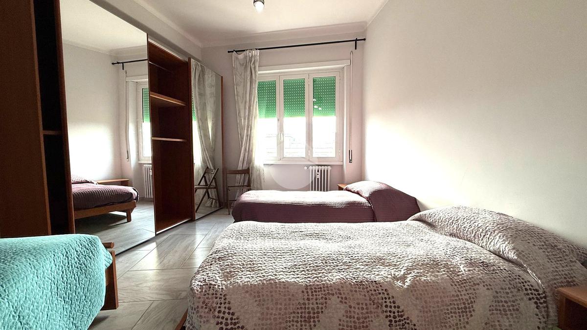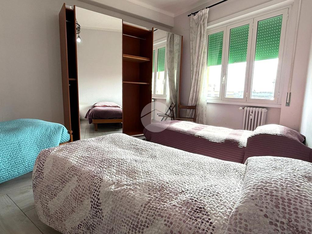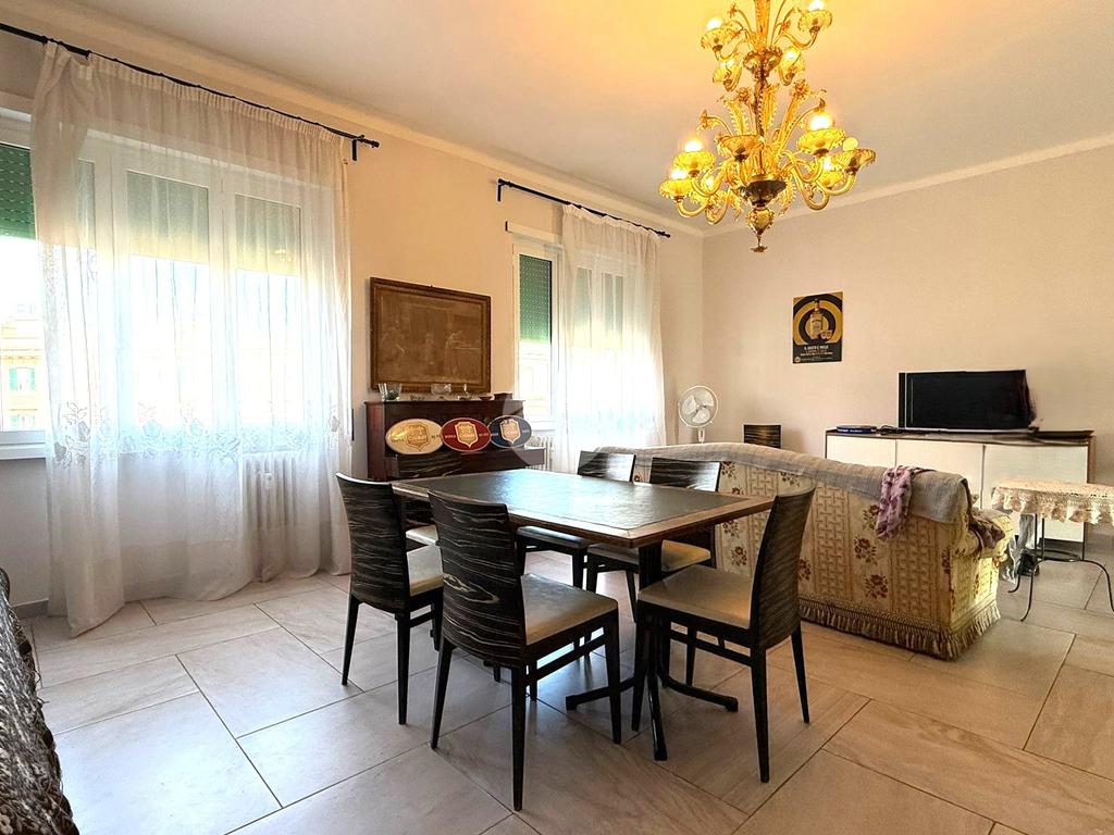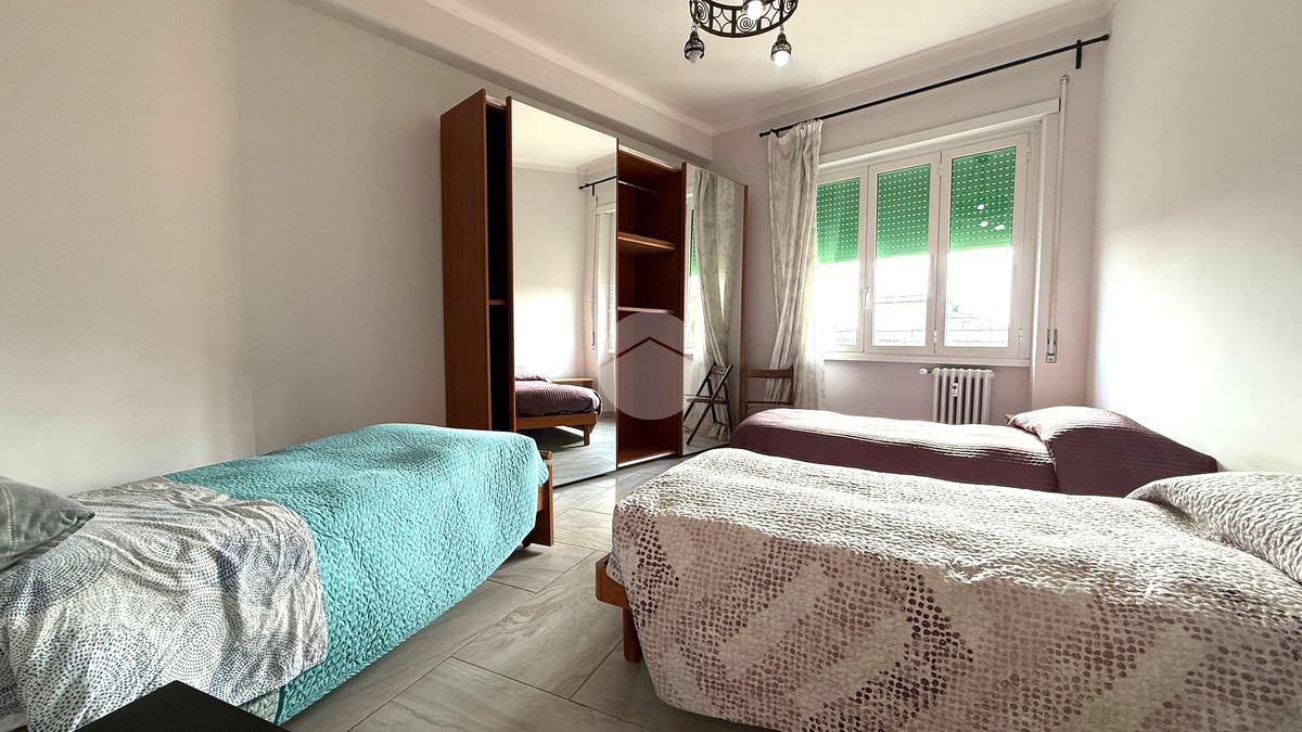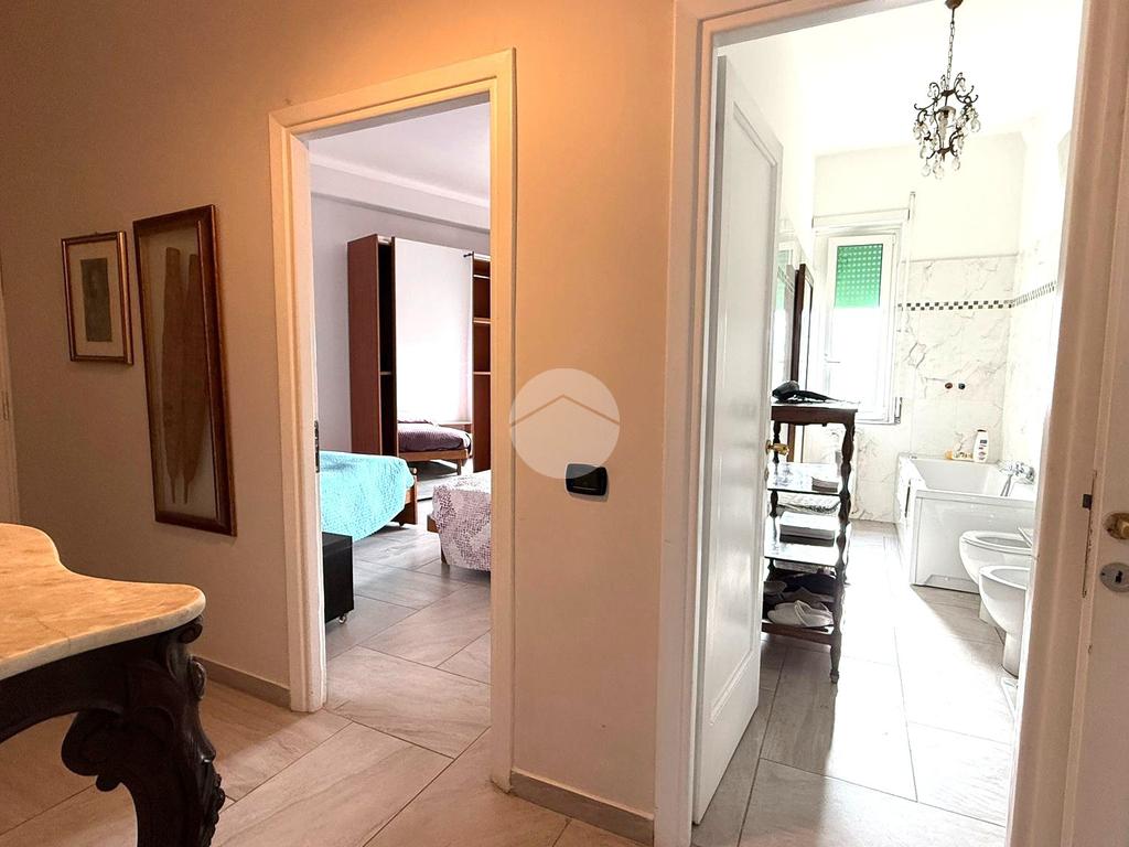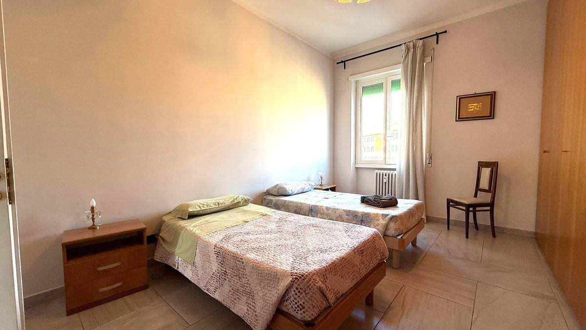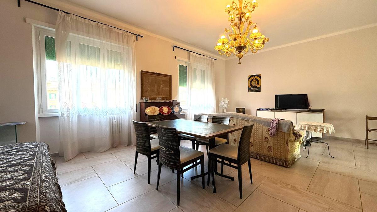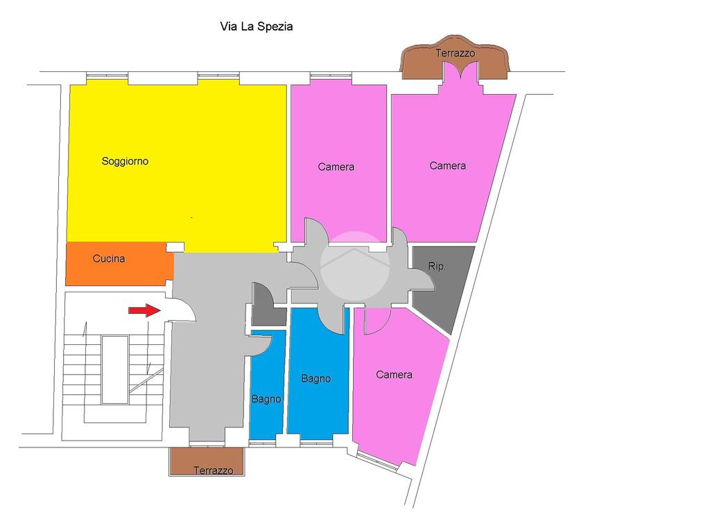 Sul lato sinistro dell'ingresso si sviluppa il doppio salone con angolo cottura, anch'esso molto luminoso grazie alla presenza di due finestre. Nella zona giorno troviamo un bagno finestrato con doccia e un comodo ripostiglio. Procedendo verso la zona notte tramite un corridoio, troviamo 3 camere matrimoniali di cui 1 con terrazzino. Due delle camere affacciano su via La Spezia e una affaccia sul lato opposto. L'immobile si completa con un bagno finestrato con vasca e ampio ripostiglio.