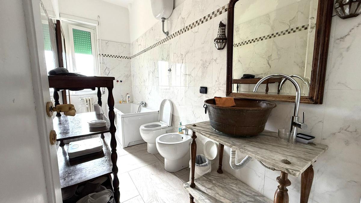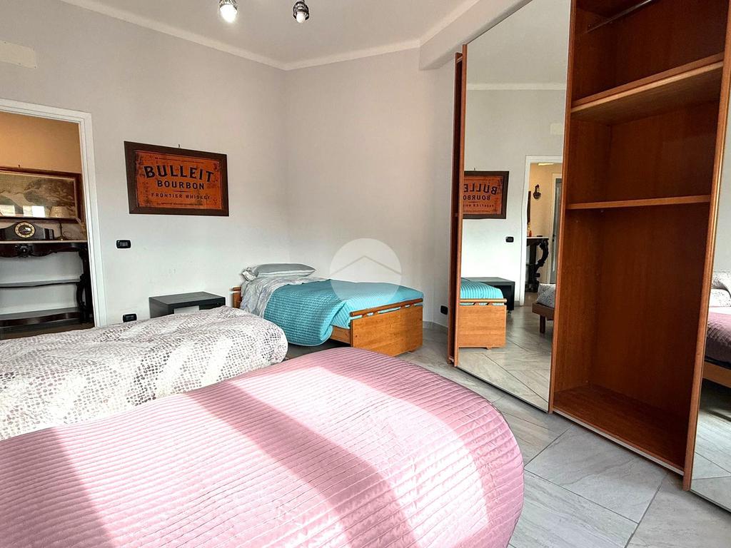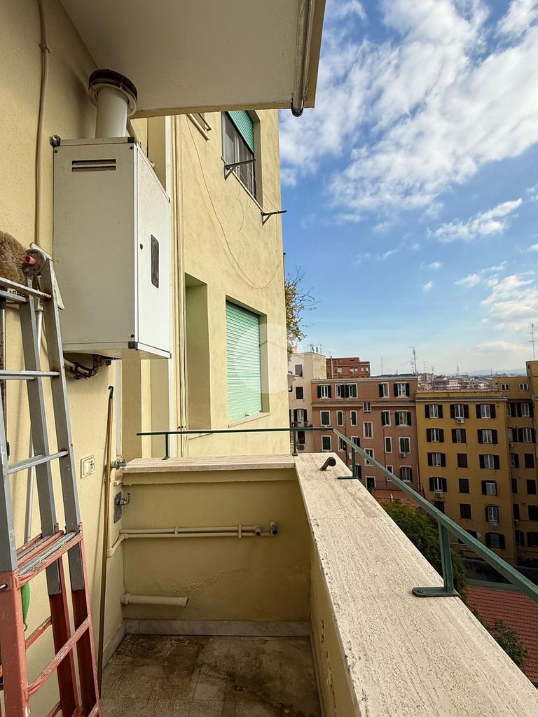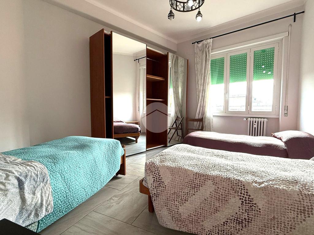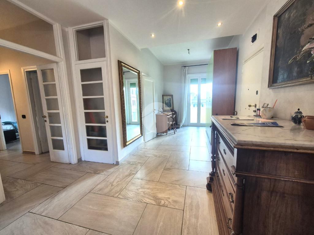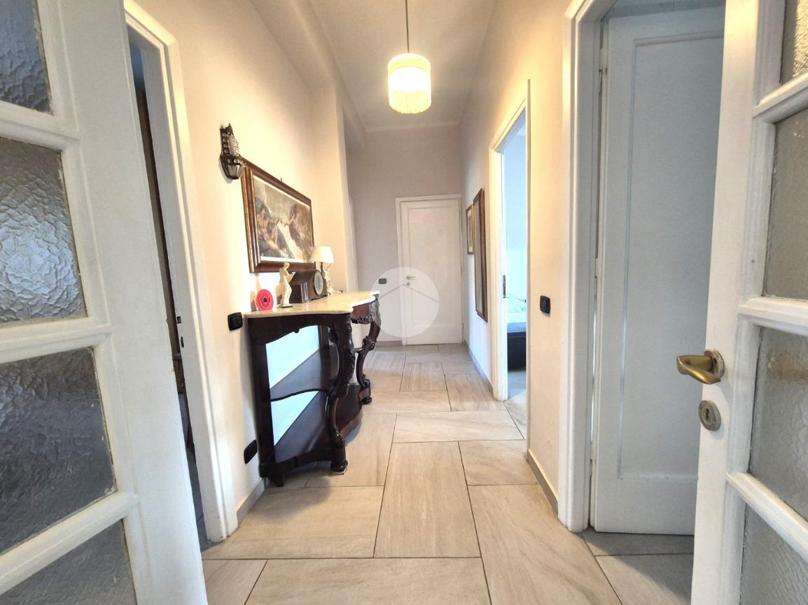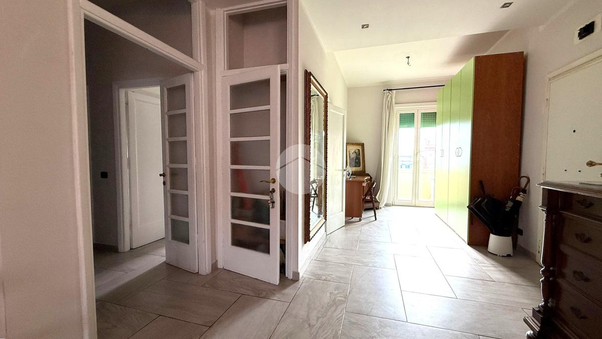 Sul lato sinistro dell'ingresso si sviluppa il doppio salone con angolo cottura, anch'esso molto luminoso grazie alla presenza di due finestre. Nella zona giorno troviamo un bagno finestrato con doccia e un comodo ripostiglio. Procedendo verso la zona notte tramite un corridoio, troviamo 3 camere matrimoniali di cui 1 con terrazzino. Due delle camere affacciano su via La Spezia e una affaccia sul lato opposto. L'immobile si completa con un bagno finestrato con vasca e ampio ripostiglio.