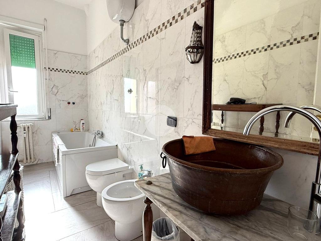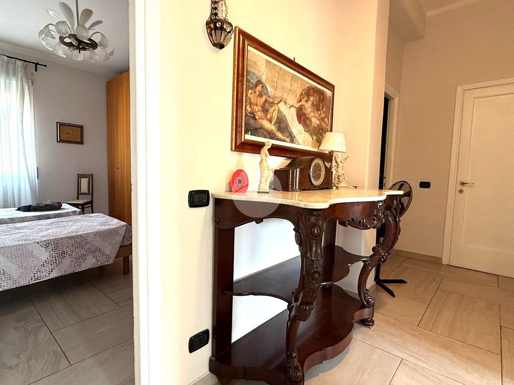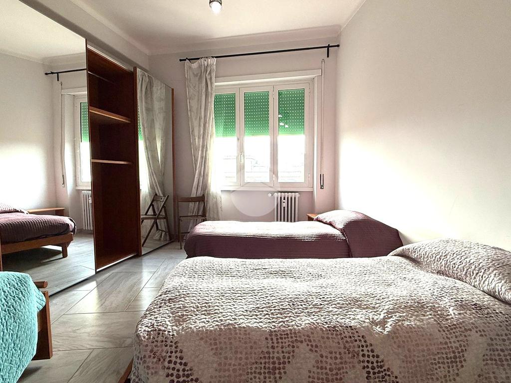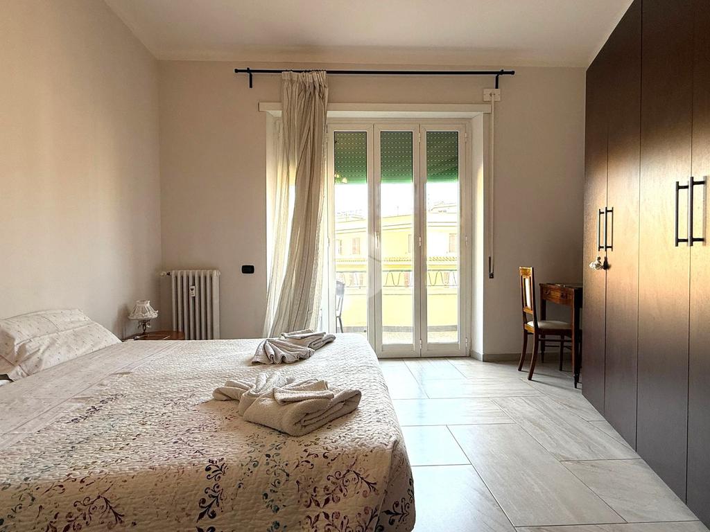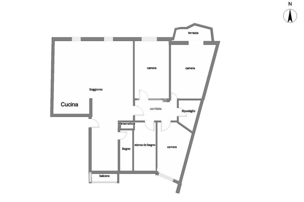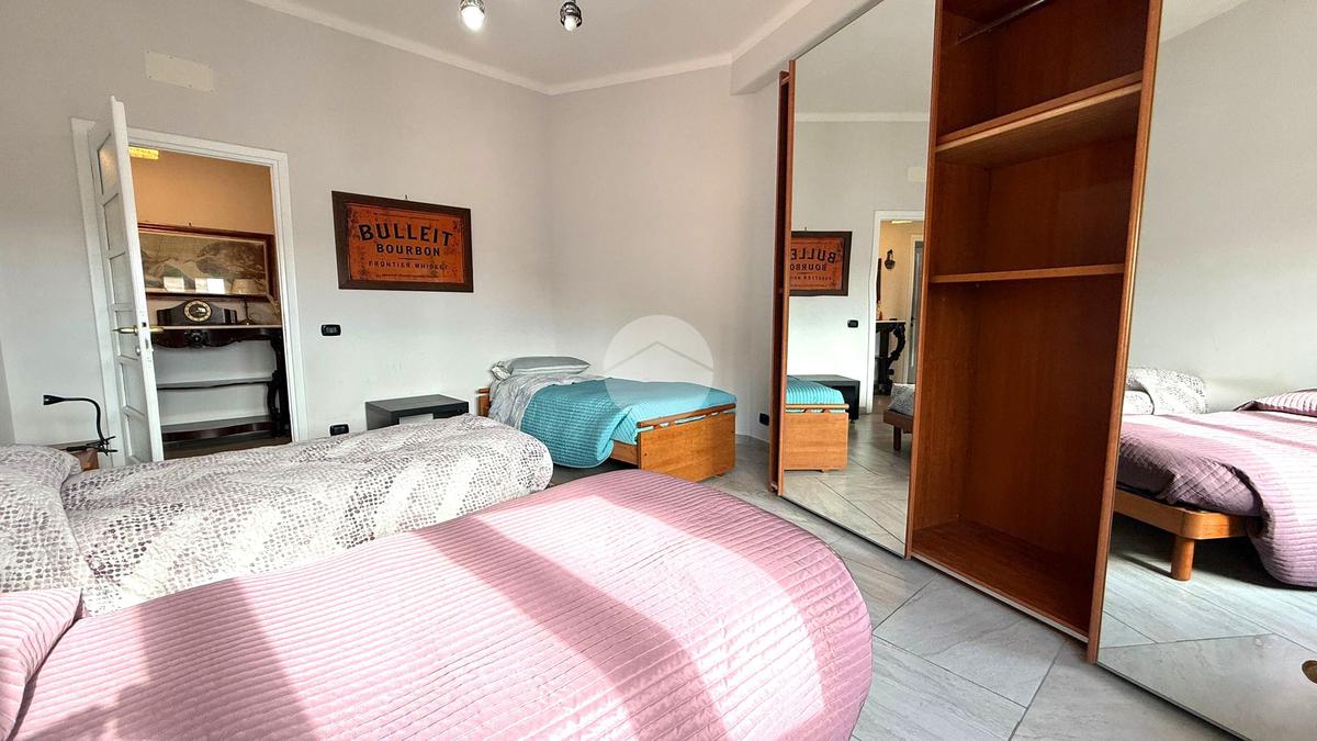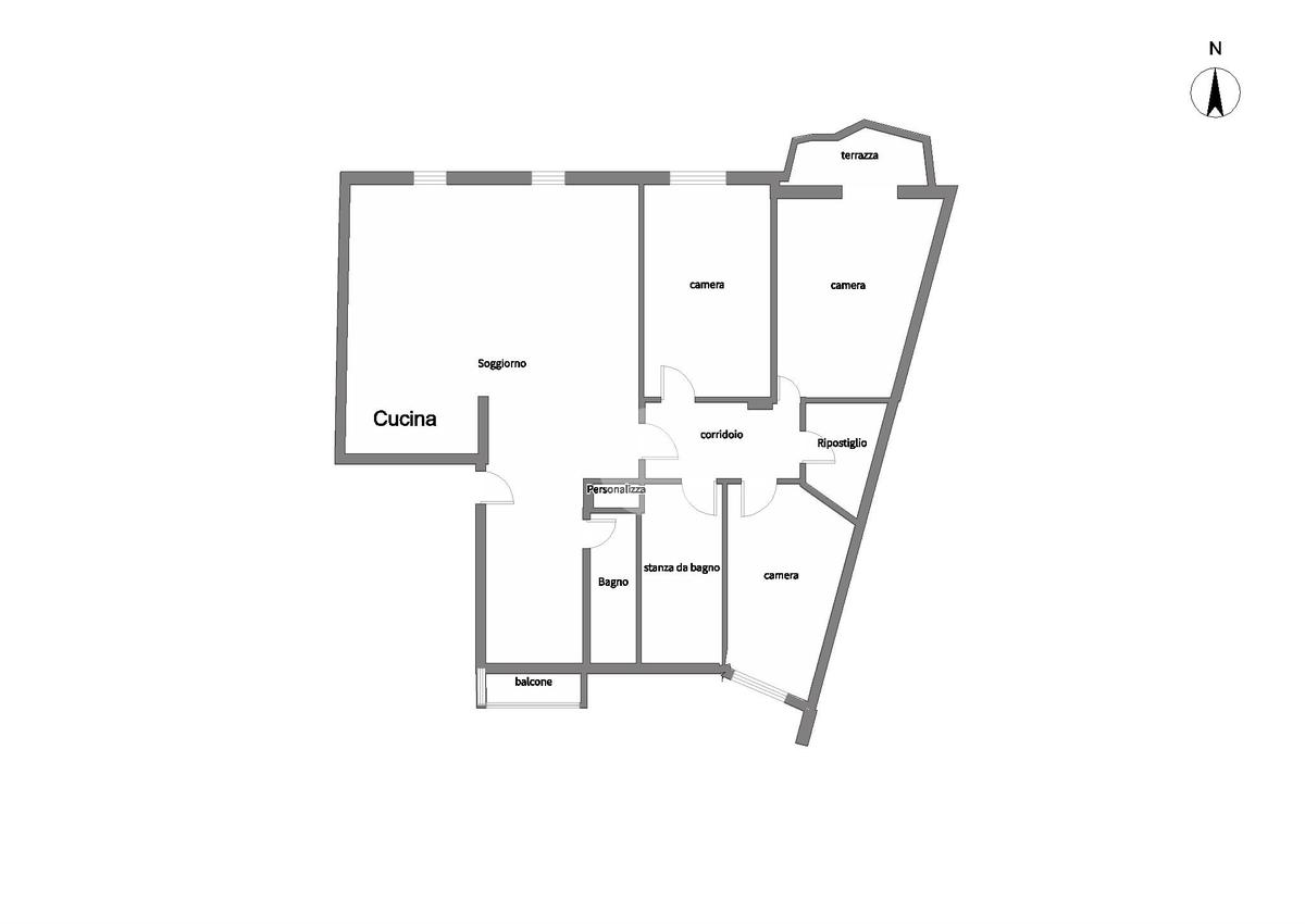 Sul lato sinistro dell'ingresso si sviluppa il doppio salone con angolo cottura, anch'esso molto luminoso grazie alla presenza di due finestre. Nella zona giorno troviamo un bagno finestrato con doccia e un comodo ripostiglio. Procedendo verso la zona notte tramite un corridoio, troviamo 3 camere matrimoniali di cui 1 con terrazzino. Due delle camere affacciano su via La Spezia e una affaccia sul lato opposto. L'immobile si completa con un bagno finestrato con vasca e ampio ripostiglio.