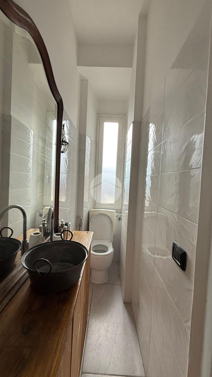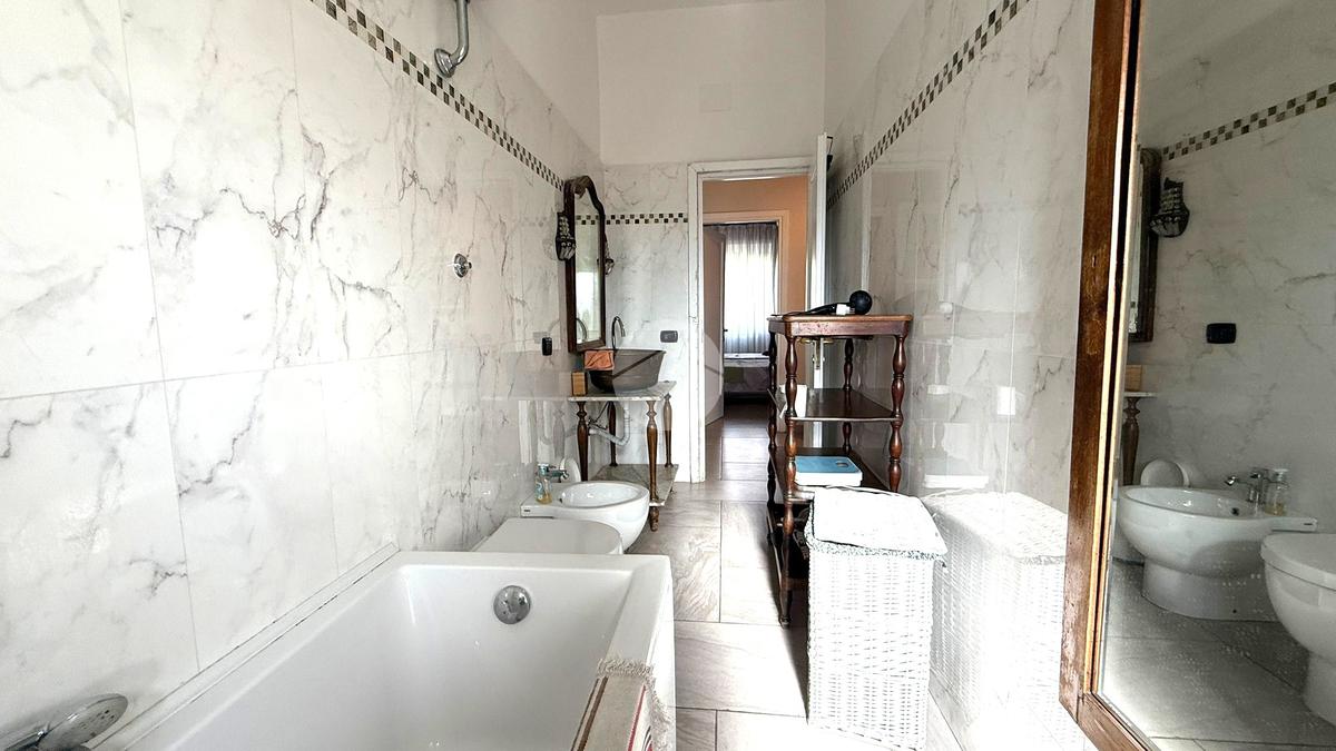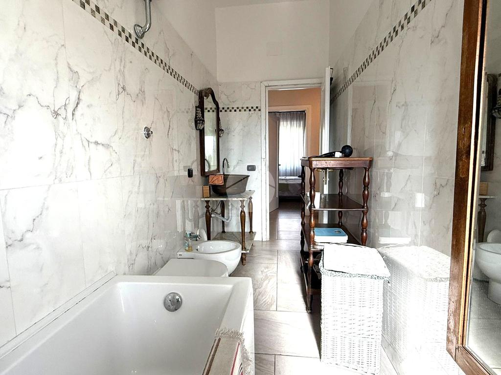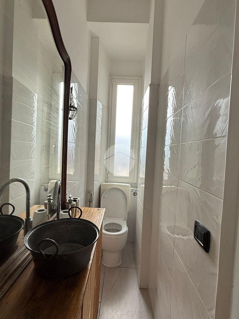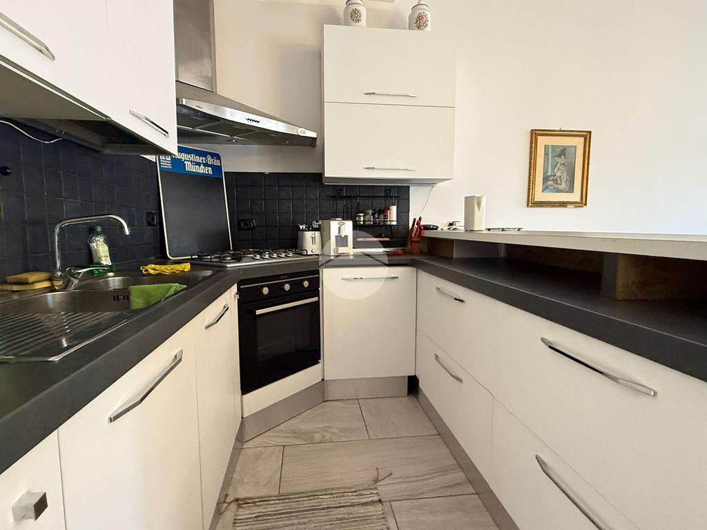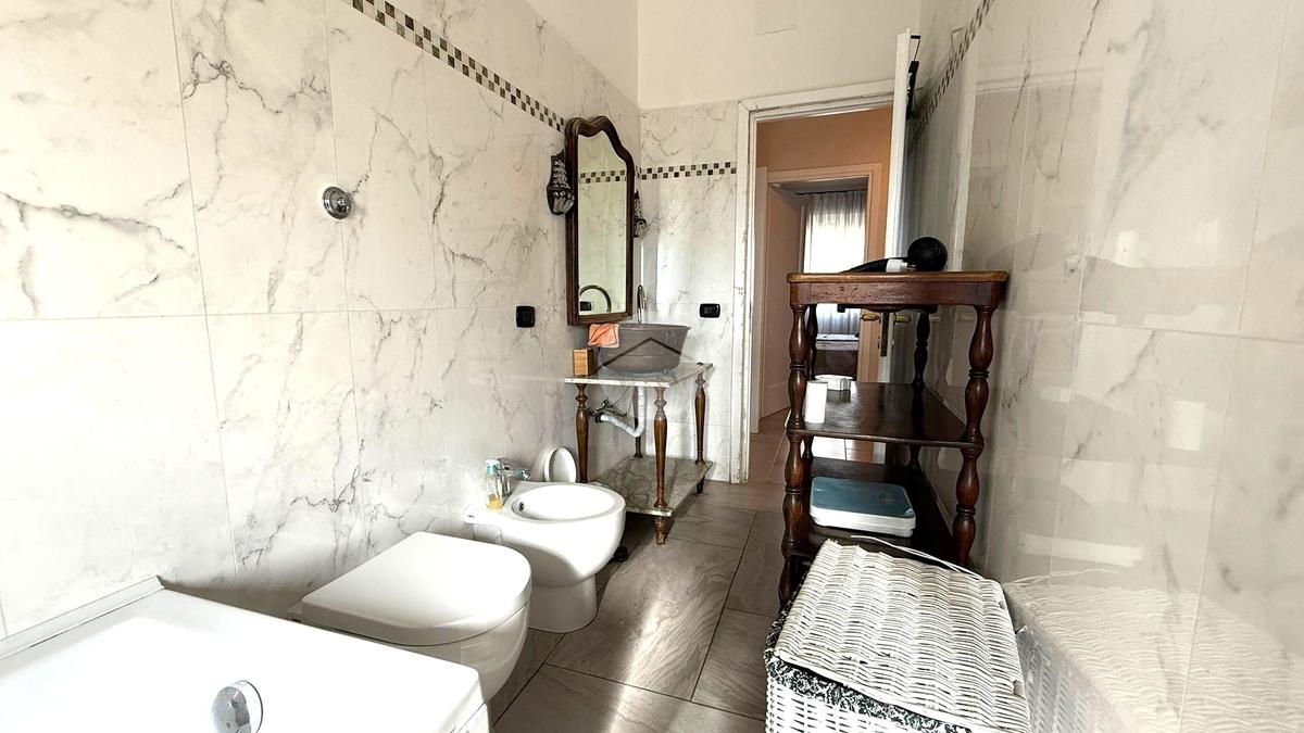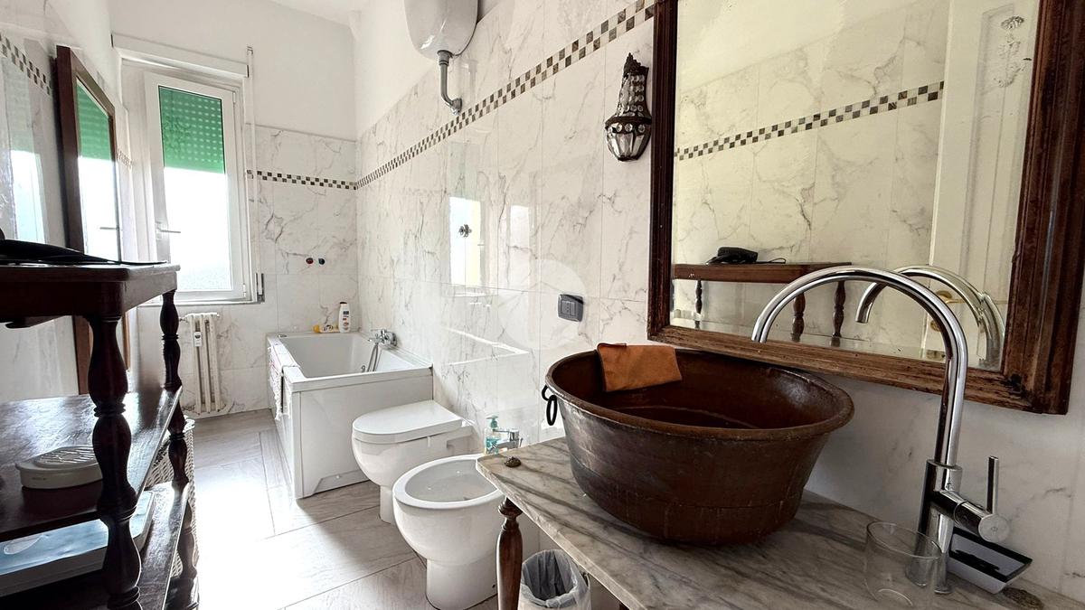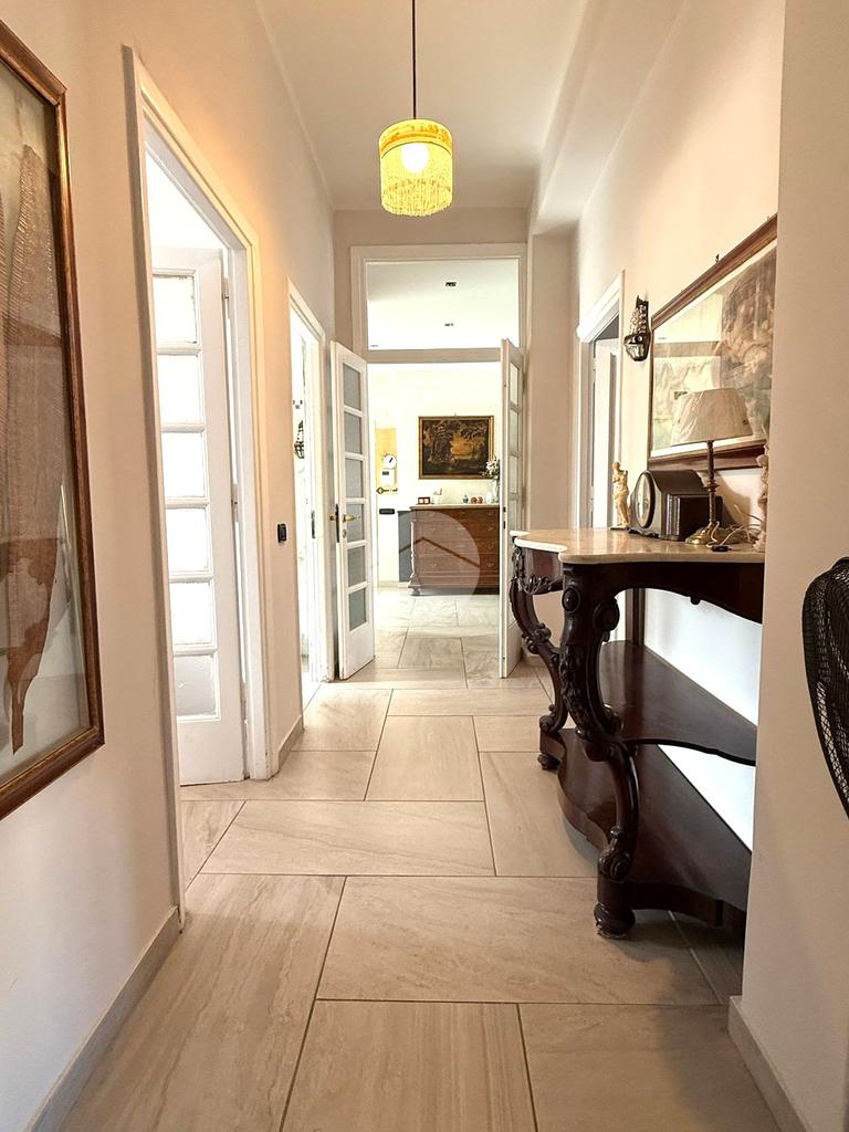 Sul lato sinistro dell'ingresso si sviluppa il doppio salone con angolo cottura, anch'esso molto luminoso grazie alla presenza di due finestre. Nella zona giorno troviamo un bagno finestrato con doccia e un comodo ripostiglio. Procedendo verso la zona notte tramite un corridoio, troviamo 3 camere matrimoniali di cui 1 con terrazzino. Due delle camere affacciano su via La Spezia e una affaccia sul lato opposto. L'immobile si completa con un bagno finestrato con vasca e ampio ripostiglio.