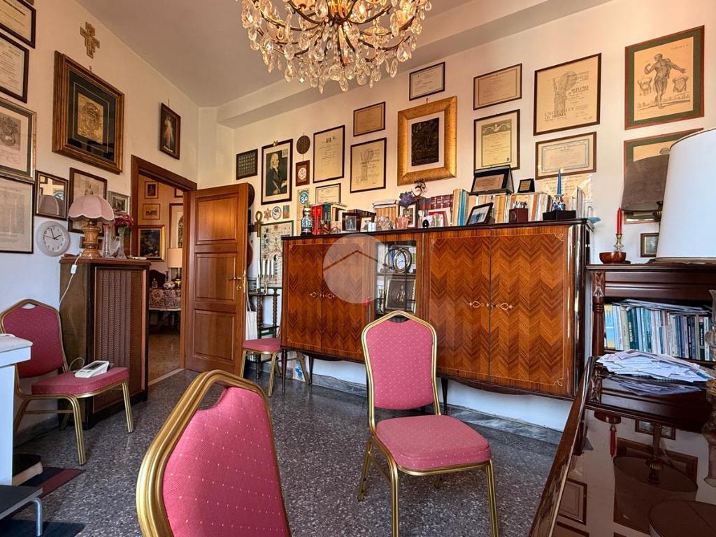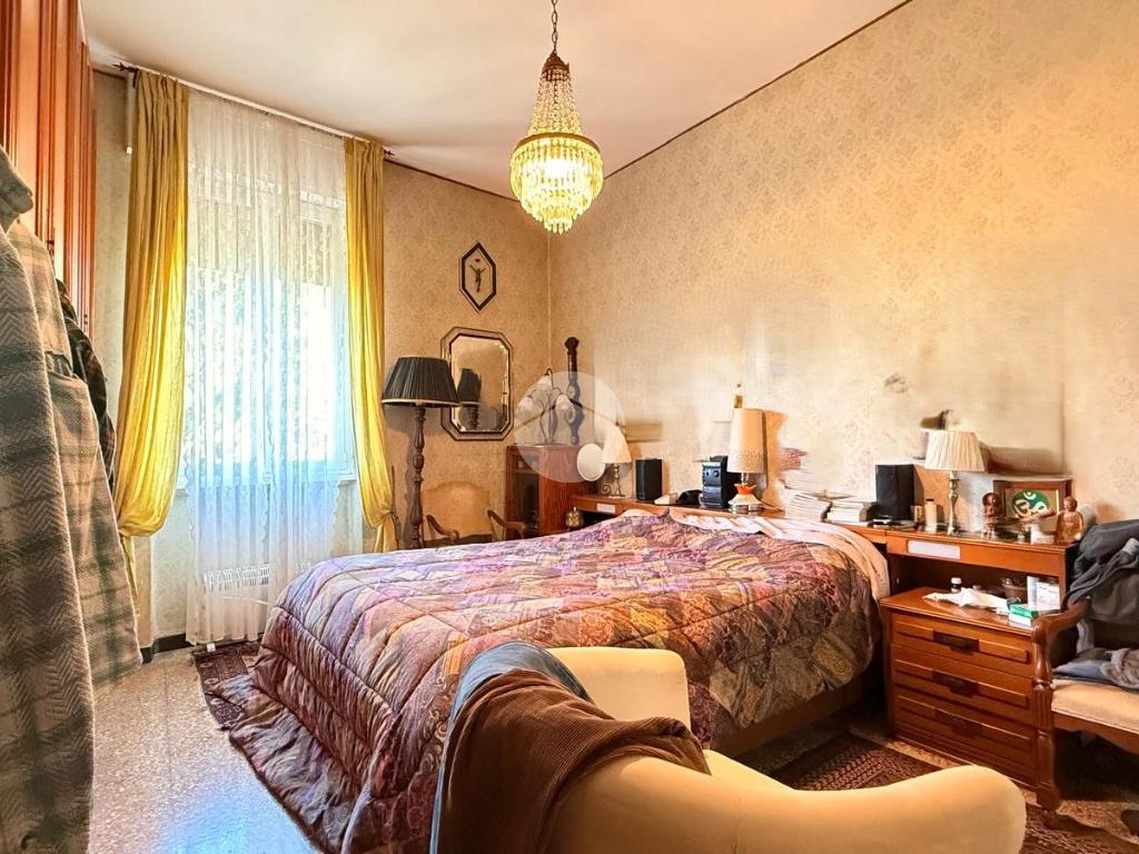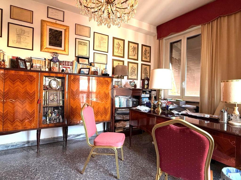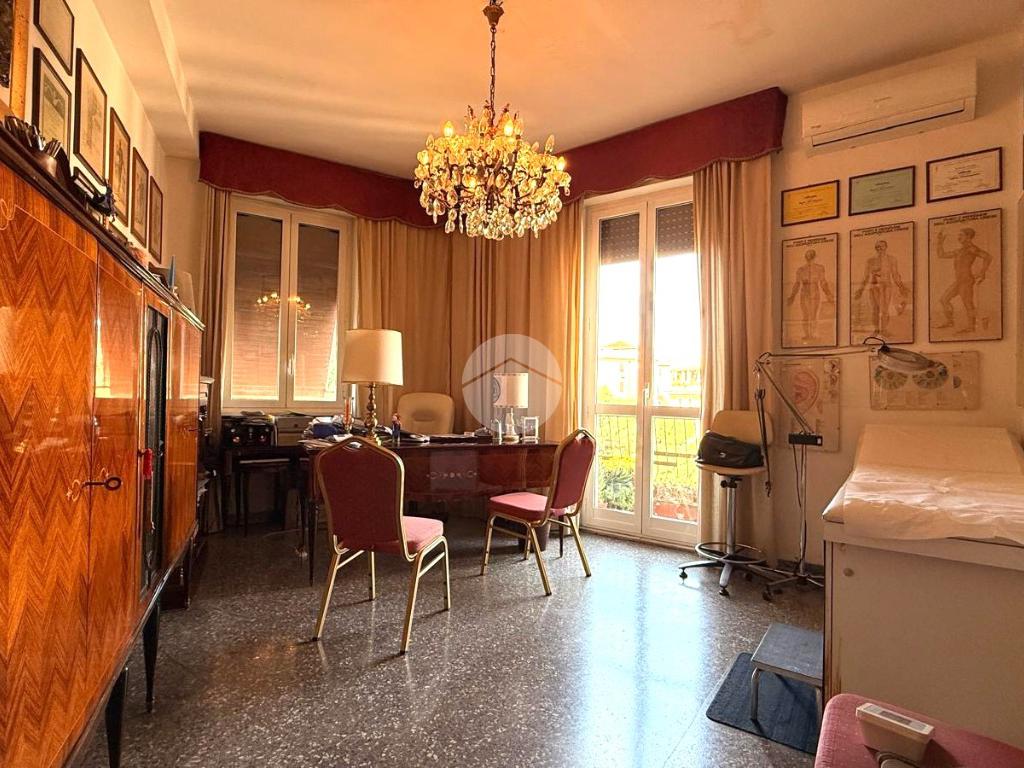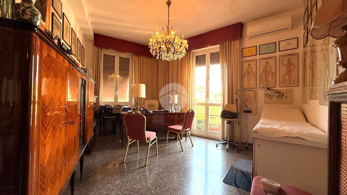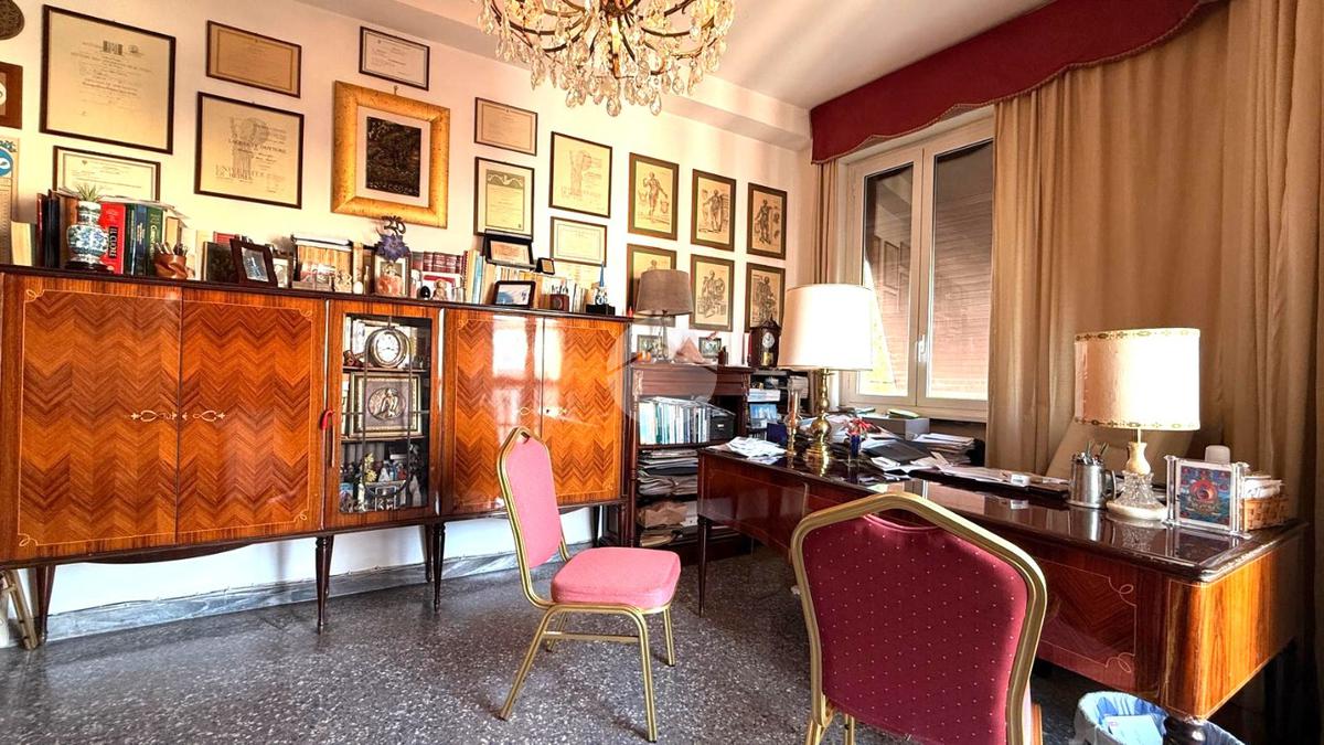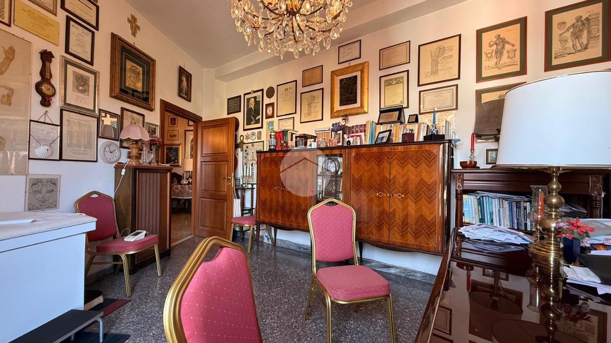 Procedendo, abbiamo un’altra camera (attualmente adibita a studio medico), con balcone e due finestre con il medesimo affaccio sul parco di Villa Fiorelli.