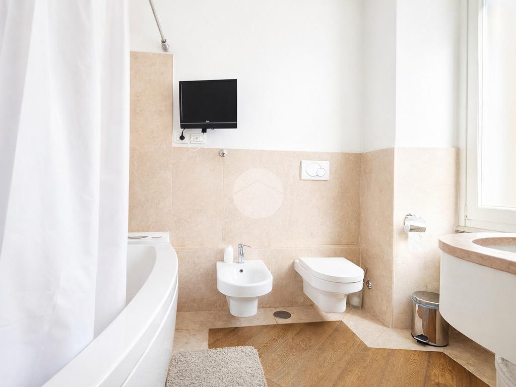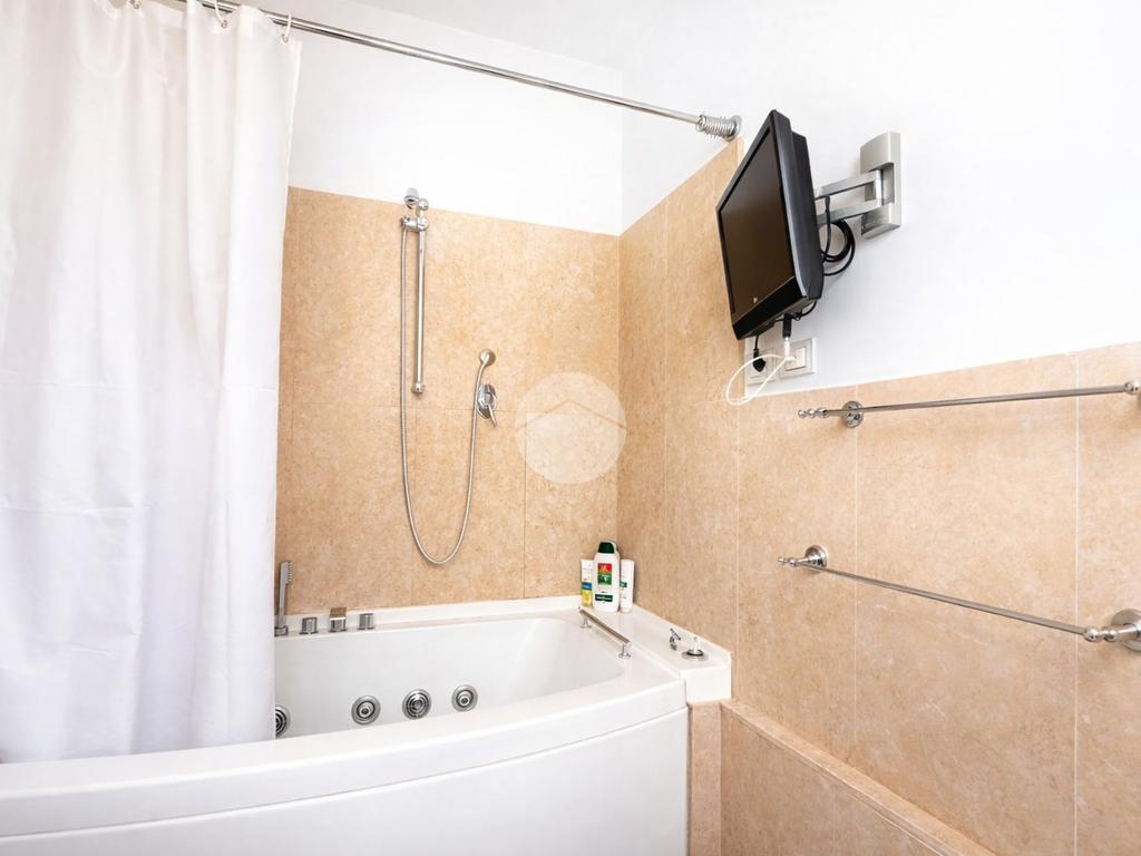 La principale possiede anche il bagno en suite, anche esso completo di sanitari,finestrato e con vasca. Sempre nella stessa camera è presente il balcone in cui è stata installata la caldaia.