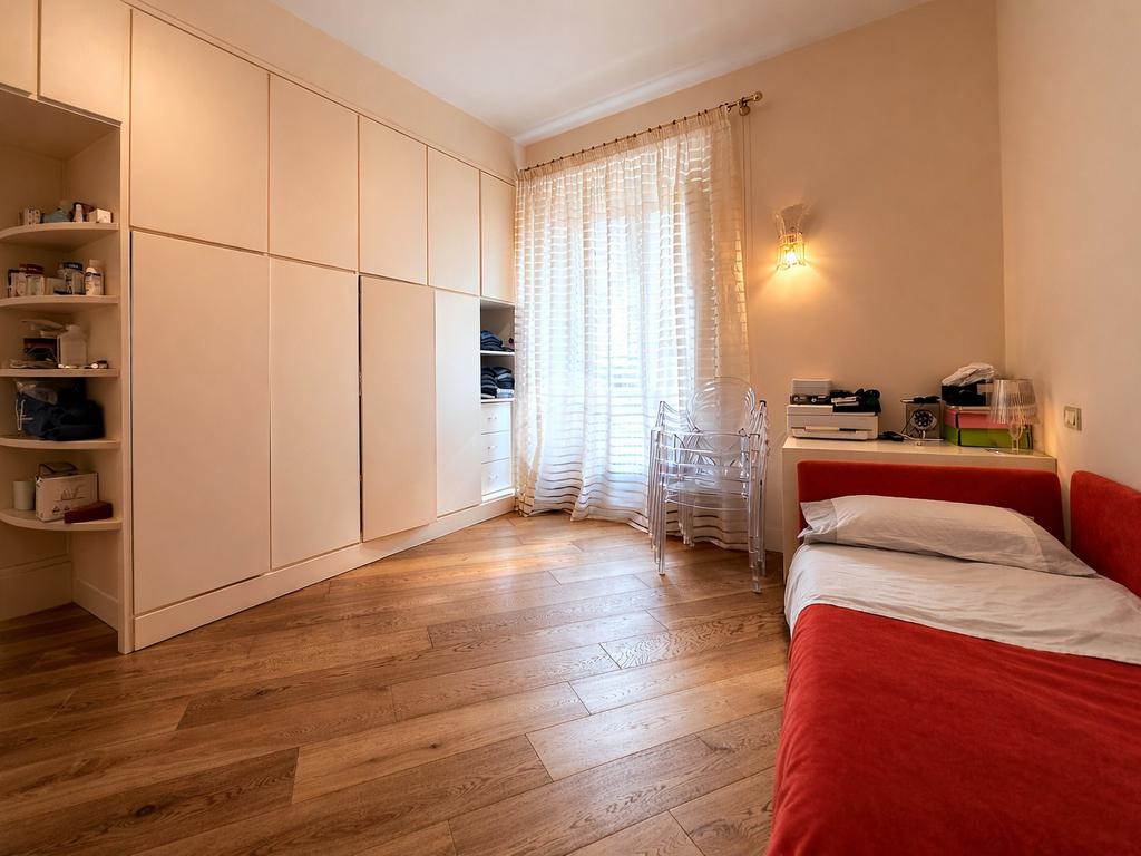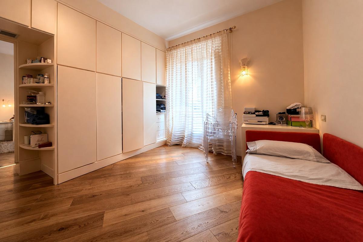 La seconda camera matrimoniale è caratterizzata da un armadio a muro incassato e una nicchia dotata di illuminazione che funge da scarpiera.